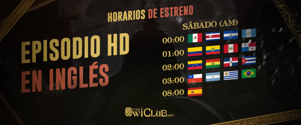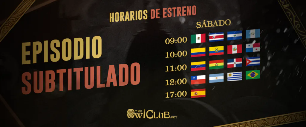 Y, al final tenemos los episodios subtitulados. Estos ya vienen en HD de alta calidad en The Owl Club, pero solemos organizar un Watchparty oficial en The Owl Club Live esperando el episodio una hora antes, por si deseas venir 😃